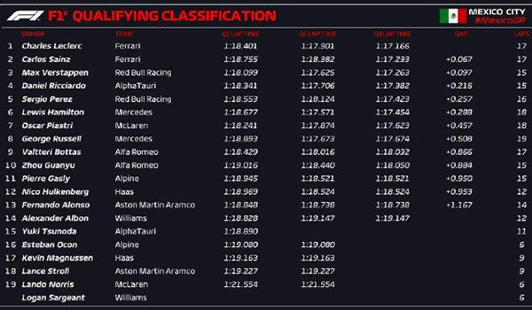 - 【集锦】[腾讯全场集锦]法拉利赢麻了!勒克莱尔夺得墨西哥站杆位 维斯塔潘位列第三2023-10-29 11:35:57