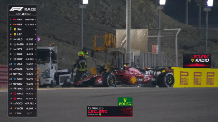 上个赛季不断“整活”的法拉利在新赛季第一站就抢镜,勒克莱尔的车坏了,之后法拉利官宣,勒克莱尔退赛是因为赛车引擎出现问题。勒克莱尔非常遗憾,本有机会登上领奖台,结果新赛季开始就退赛。