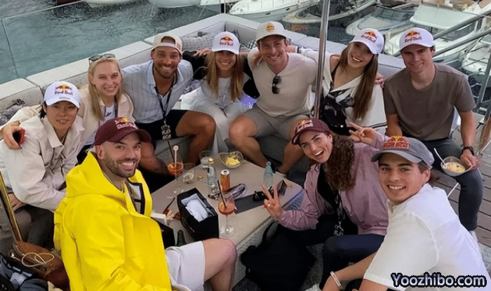 可以看到,谷爱凌在观战F1期间,都是和自己的赞助商红牛一起,包括身边的运动员和车手,都是红牛团队的,等于是“公司团建”。周冠宇是阿罗车队的,等于是和谷爱凌的赞助商竞争关系的,所以两人极少互动和同框。