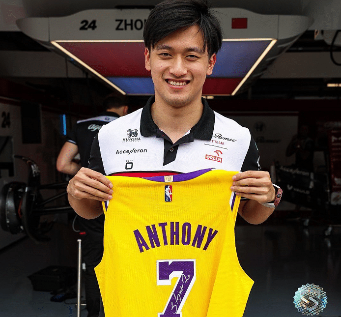 梦幻联动!周冠宇获赠安东尼签名战袍,钟情湖人:车身致敬科比