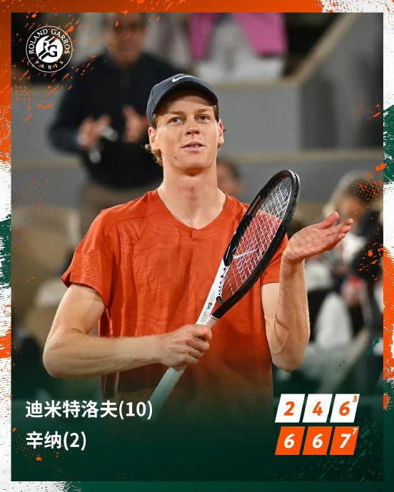 直播车讯 6月4日讯 在刚刚结束的法网男单1/4决赛中,赛会2号种子辛纳直落三盘迪米特洛夫,晋级法网男单4强。
