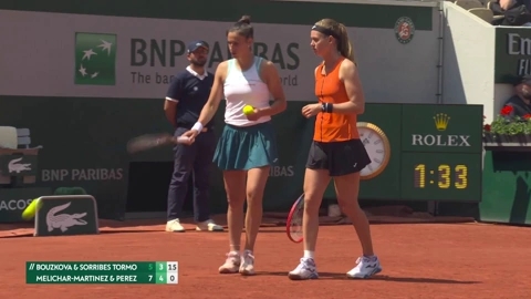 直播车讯 北京时间06月07日 2023法网女双1/4决赛,6号种子梅里查尔/佩雷兹以7-5 6-3击败布兹科娃/托莫,率先晋级四强。接下来,她们将静候王欣瑜/谢淑薇和库德梅托娃/萨姆索诺娃之间的胜者。