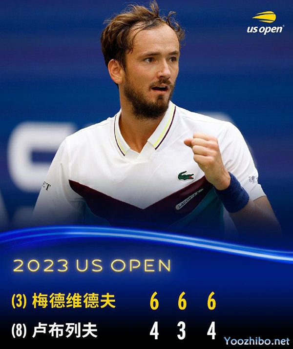 直播车讯 北京时间9月7日,美网男单1/4决赛继续进行,梅德韦杰夫3-0击败卢布列夫,晋级四强。
