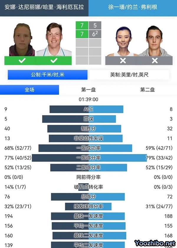 直播车讯 北京时间9月5日凌晨,美国网球公开赛展开了第八个比赛日的争夺。在混双四分之一决赛中,本赛季温网亚军组合徐一璠/弗利根(比利时),以0:2(5:7、6:7)的接近比分,遗憾不敌达尼丽娜(哈萨克斯坦)/海利厄瓦拉(芬兰)无缘混双半决赛。