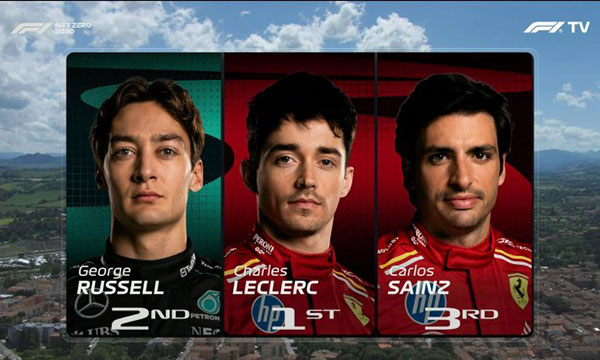 拉塞尔1:19.704暂排第1,汉密尔顿第2,法拉利在第3、4。