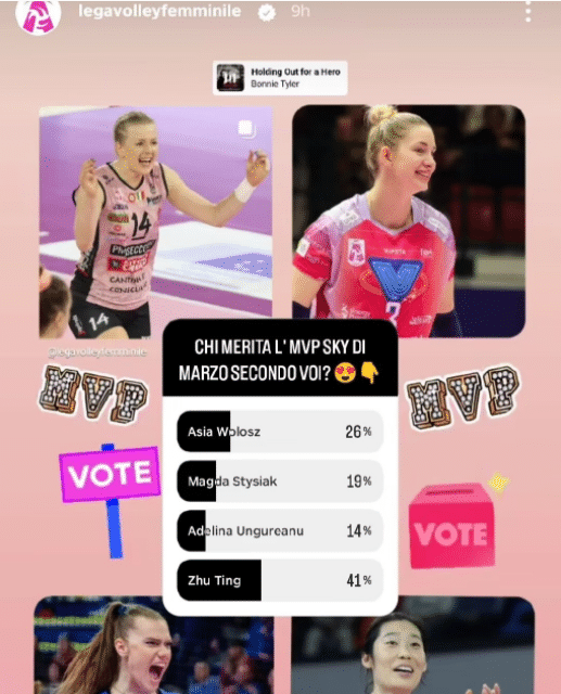 来源:直播车04-26 10:27直播车讯04月26日意大利意大利女排联赛常规赛三月份最有价值球员MVP姗姗来迟,最终科内利亚诺的沃洛兹,成功夺得MVP,这也是她本赛季第二次当选。沃洛兹在3月份联赛四战全胜,全队扣球成功率47%,贡献出7分。朱婷遗憾陪跑,这也引发球迷们的不满,被认为朱婷的MVP被抢。