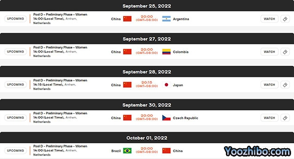| 第4轮 | 9月30日 | 20:00 | 中国 | vs | 捷克 | |