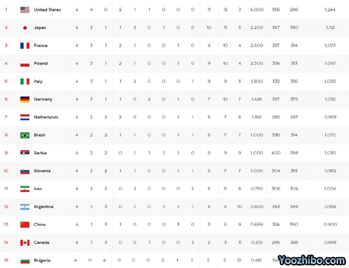 世联赛首周排名:美国队领跑,中国男排奇迹首胜升至第13
