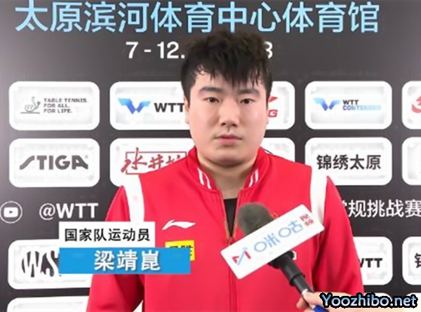 直播车讯北京时间11月11日,2023WTT常规挑战赛太原站男单1/4决赛向鹏vs梁靖崑,国乒队员梁靖崑以3-2险胜队友向鹏,晋级下一轮。比分为9-11、11-9、11-4、8-11、11-8。