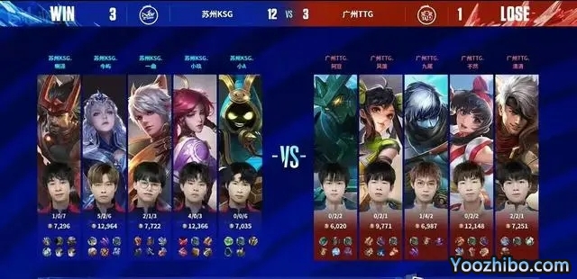 直播车讯 北京时间在04月21日,在KPL第二场比赛中,苏州KSG以3-1的比分击败了广州TTG,拿下了这至关重要的一分,这场比赛苏州KSG打野位做了轮换,今屿再次上场,也算是打出身价,特别是最后一局露娜,终于有点在重庆狼队的感觉了。