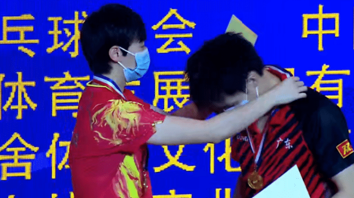 但就是在这样的情况下,林高远实现崛起,可想而知他经历了多么大的心理调整,期间的转折点是在男团决赛,虽然广东队2-3不敌上海队丢了冠军,但林高远在决赛中独得2分,其中在第四盘更是0-2落后的情况下逆转世界排名第一的樊振东,3-2掀翻樊振东之后的林高远彻底找到状态,混双和王曼昱拿下冠军,如今来到男双的赛场上,林高远再度夺得冠军,加冕双冠王。
