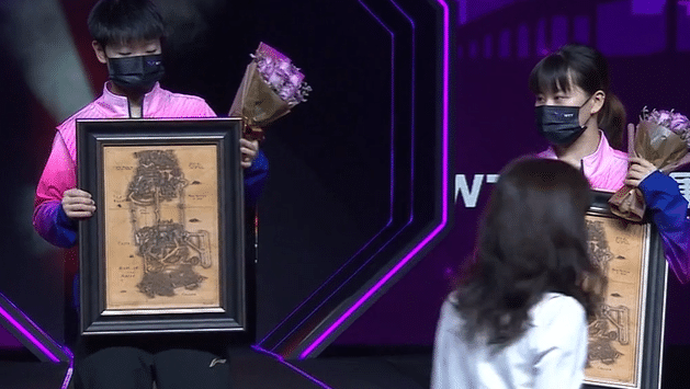赛后的颁奖仪式,先是给到国际乒联首席执行官史蒂夫,为孙颖莎和陈幸同送上鲜花和纪念品。