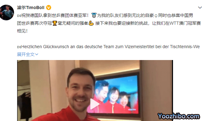 德国队的波尔虽然没有参加成都团体世乒赛,但接下来他会出战WTT澳门冠军赛,已经在社交媒体上本人亲自确认。
