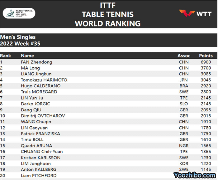 国际乒联第35周排名!孙颖莎和樊振东霸榜,00后小将排名暴涨