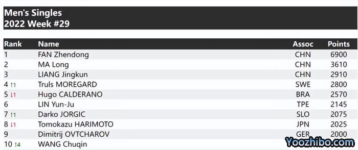 来源:直播车07-19 15:25直播车讯 北京时间2022年7月19日,随着2022年WTT球星挑战赛布达佩斯站比赛的落幕,国际乒联也公布了今年第29周的最新排名。