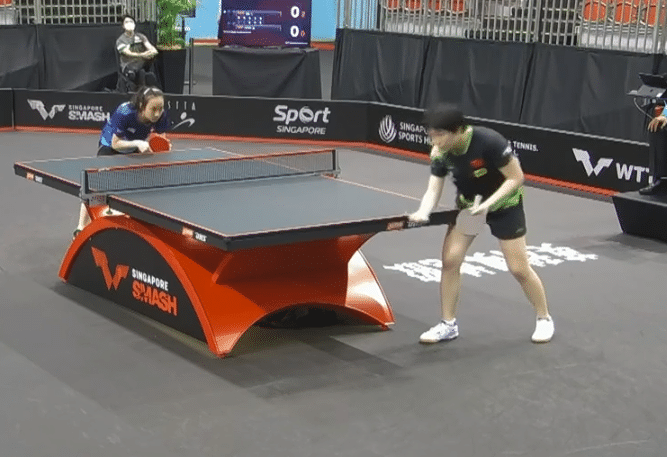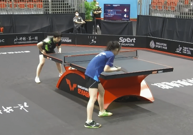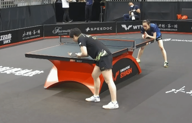 蒯曼对阵新加坡选手SER Lin Qian,第一局的比赛开始后,蒯曼进入状态比较快,她取得了7:2的领先,这一局的比赛也是没有什么悬念,两人实力相差比较大,11:6,蒯曼轻松拿下第一局,第二局的比赛两队打得比较胶着,5:4之后,蒯曼连续得分,新加坡选手连续回球出出界,11:6,蒯曼轻松拿下第2局,大比分2:0领先对手。