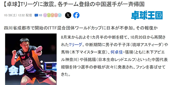 日本乒乓球专业媒体《卓球王国》写道:“这难道只是中国的问题吗?日本方面没有过错吗?”