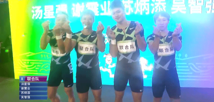 这4个人可以说是目前国内短跑能力最强的几位,苏炳添不用说了,亚洲百米和室内60米纪录保持者,9秒83的百米亚洲新纪录,第一个闯入奥运百米决赛的黄种人!谢震业是200米亚洲纪录保持者,汤星强是这届全运会的200米金牌得主,吴智强百米也是全国前三的水平!