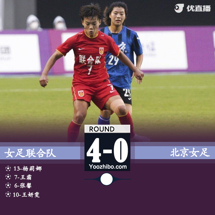 全场比赛结束,奥运联合队4-0击败北京队,进入全运会女足决赛。