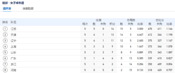 来源:直播车09-22 11:45直播车9月22日讯 全运会女排比赛已经进行了5轮,循环赛一共有7轮,按照积分排名前四的进入到半决赛,所以目前还剩下2轮,各队对于前四的竞争是非常激烈的。目前江苏已经提前晋级,天津和辽宁晋级的希望也非常大,河南浙江已经提前出局,而剩下的球队都有希望争夺前四名的席位。