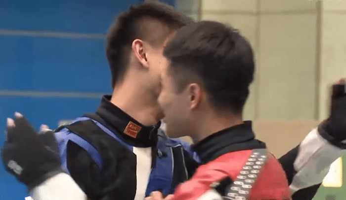 杨皓然这边,虽然无缘三连冠,但杨皓然还是非常大气的给张常鸿送上拥抱和祝福,祝贺他斩获金牌。随后杨皓然还和获得铜牌的刘柏辰拥抱,三位斩获奖牌的选手一起合影,脸上都露出了笑容。对于杨皓然来说确实是非常可惜,尤其是当进入到最后一组之前一度处于领先,无奈的是被张常鸿逆转,同时在最后的一枪无缘冠军。昨天杨皓然和杨倩的“杨杨组合”刚刚拿下了金牌,没有能够连续拿下金牌,很遗憾。