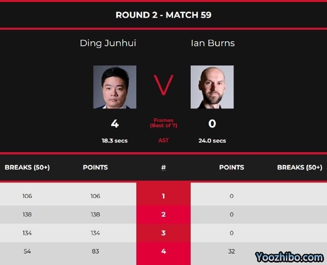 - 【集锦】[优酷全场集锦] 10月27日斯诺克英格兰公开赛资格赛 丁俊晖4-0伊恩-伯恩斯 集锦2022-10-27 21:41:50
