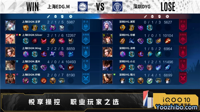 上海EDG.M选用:关羽、铠、弈星、蒙犽、孙膑