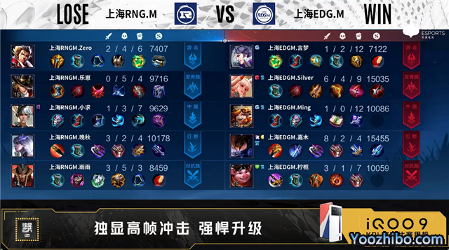 上海EDG.M选用:关羽、橘右京、弈星、孙尚香、太乙真人