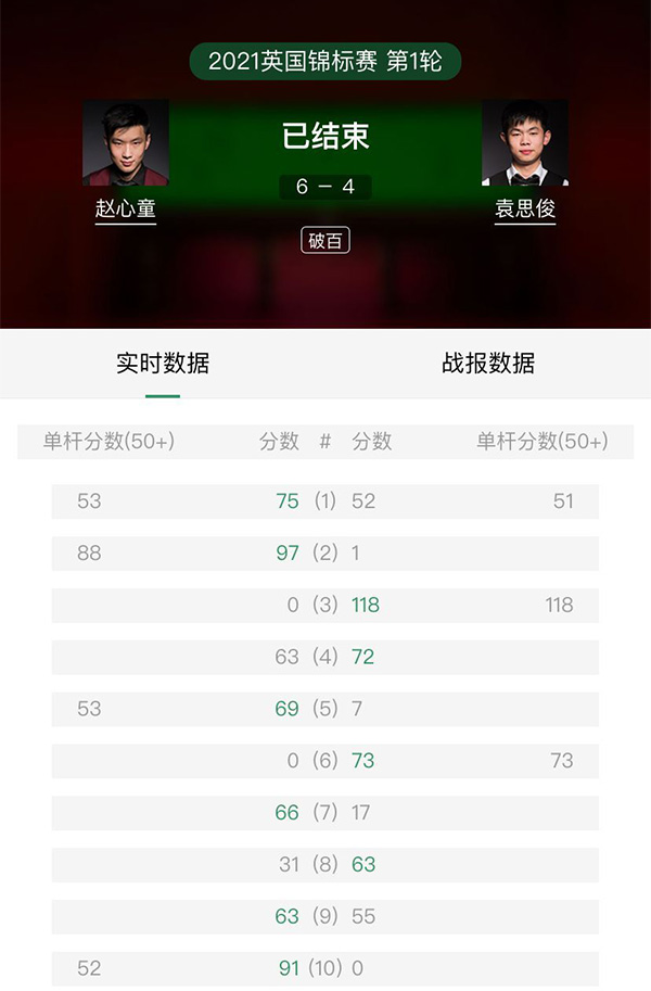 综合直播斯诺克 2021斯诺克英锦赛第1轮 赵心童vs袁思俊 全场录像回放