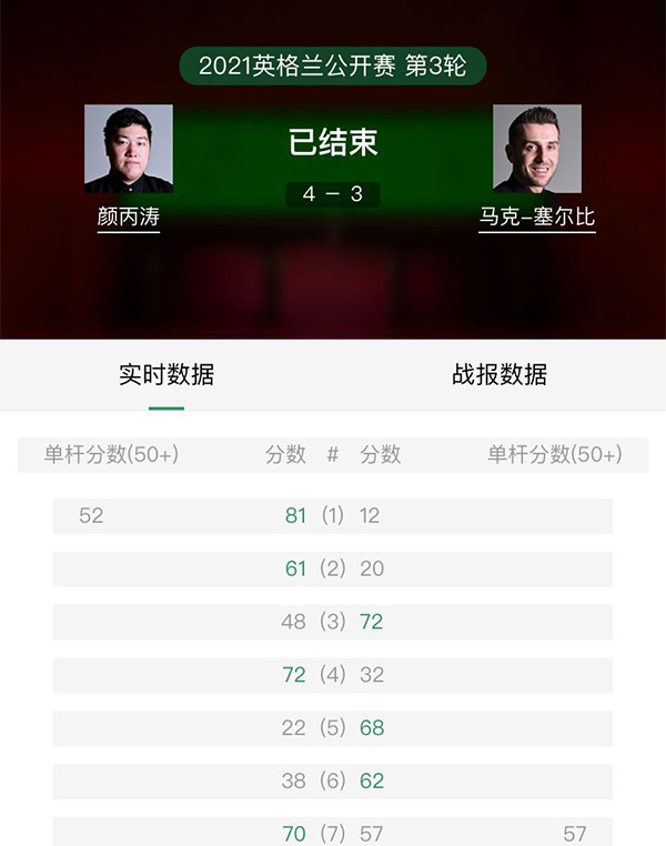 综合直播斯诺克 2021斯诺克英格兰公开赛第3轮 颜丙涛vs塞尔比 全场录像回放