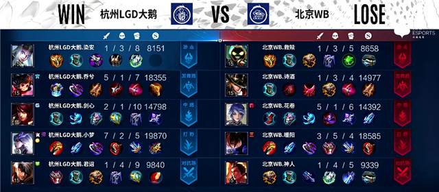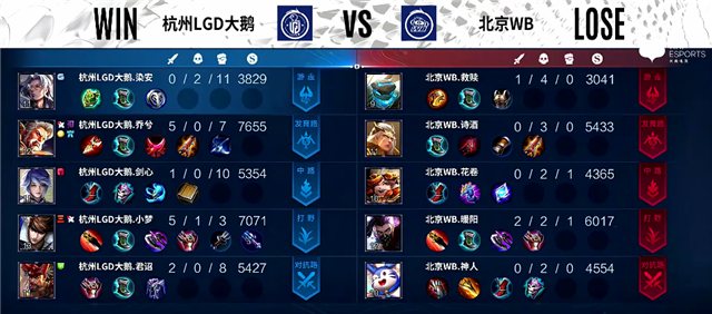 杭州LGD大鹅禁用:镜、大乔、周瑜、西施