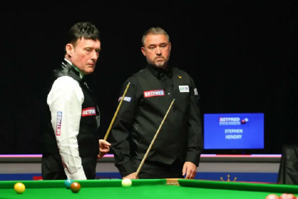 第1局,亨德利手感欠佳,怀特进入状态更快,几次上手以65-8率先取胜。第2局,亨德利逐渐找到进攻感觉,把握住机会以76-9拿下追平。第3局,双方你来我往,亨德利成功清台,以57-54获胜2-1反超。第4局,亨德利打出本场个人第一杆50+,得到53分以95-11胜出,上半场战罢3-1领先。