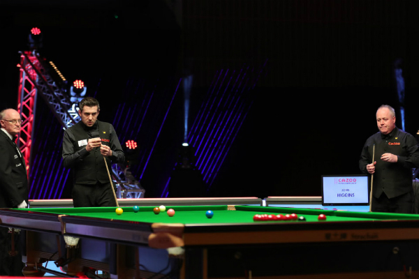 直播车讯 北京时间2月27日消息,2021年斯诺克球员锦标赛继续进行1/4决赛的较量。4届世锦赛冠军“巫师”约翰-希金斯,在与老对手3届世锦赛冠军马克-塞尔比比赛中打得极为霸气,前五局狂轰100+70+63+60分,5-0轻松赢得赛点。