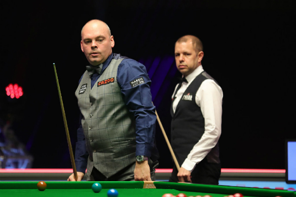 直播车讯 北京时间2月25日凌晨时分,本次锦标赛进行了首场四强的较量,斯图尔特·宾汉姆对阵巴里·霍金斯,两位老将上演了70年代的精彩对决,有趣的是回顾双方漫长的职业生涯,本场比赛还是他们在排名赛中的首次相遇。