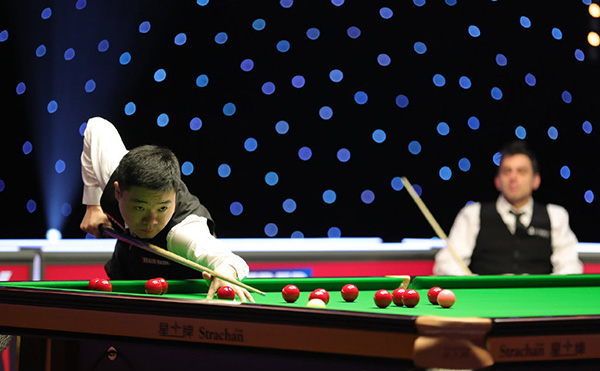 首局丁俊晖迅速找到手感,充分上手后,打出一杆83分清光黄球,奥沙利文上场热身清台,丁俊晖以104-32先声夺人。第二局上来两人防守争夺,丁俊晖一杆连打带跑,将红球留在袋口。奥沙利文打进后咖啡球中袋失误,此后再进红球依然未能叫到彩球。丁俊晖长台打进后上手,围绕黑球和粉球连续进攻,单杆得到75分再下一局。