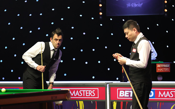 第三局丁俊晖上手仅得到15分,打蓝K红时出现致命失误,红球堆完全散开,奥沙利文接管台面后仅得到8分,同样犯下致命的失误,再次将球权拱手相让,此时的球形,奥沙利文很难再回到台面,最终丁俊晖单杆73完成超分,比分来到3-0。第四局对于奥沙利文来说至关重要,这局球的胜负直接关系着后续比赛的走势。防守中丁俊晖率先失误,奥沙利文稳稳推进左边顶袋红球上手,此时的球形非常理想,最终奥沙利文单杆103分扳回一局,以两局之差进入到局间休息。