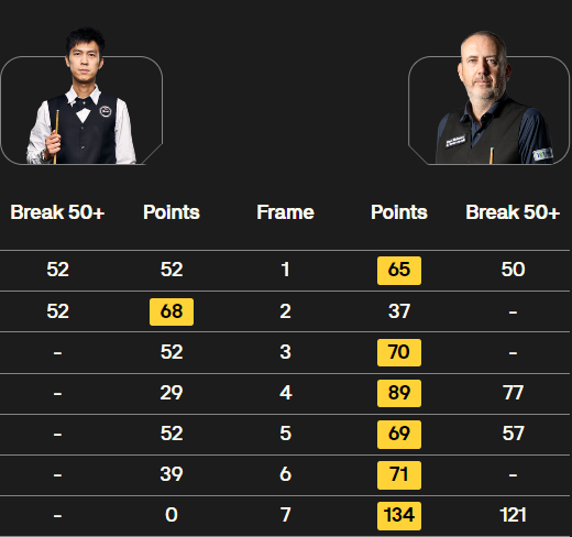 第八局:徐思轰出单杆破百112分赢下该局,最终以6-2的大比分取胜,晋级16强。