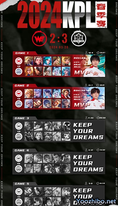 直播车讯 北京时间3月20日,2024KPL春季赛今日压轴之战是由武汉eStar对阵到西安WE!最终,武汉eStarPro3:2战胜西安WE。