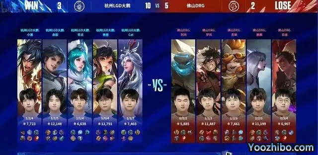 直播车讯 北京时间4月22日,在KPL第一场比赛中,杭州LGD大鹅以3-2的比分力克佛山DRG,拿下第三轮常规赛的第四个大场积分,已经稳居前二。