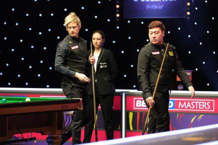 来源:直播车01-13 10:54直播车讯 北京时间1月13日,2021年斯诺克大师赛继续展开首轮争夺,在今天凌晨结束的两场比赛中,出现了低排名球手战胜高排名的爆冷现象。其中,罗伯逊5-6不敌颜丙涛,惨遭淘汰;塞尔比3-6不敌马奎尔,同样无缘晋级八强。
