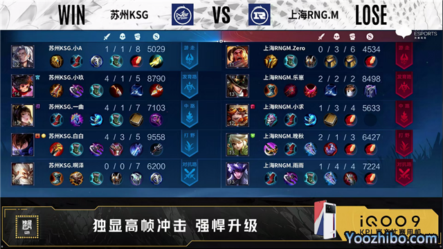 直播车讯 北京时间6月25日2022年KPL夏季赛常规赛第一轮第三周第四日第一场,由苏州KSG对阵上海RNG.M,以下是本场比赛快讯: