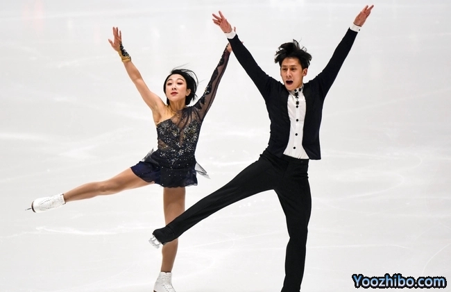 第17组登场的是两届世界冠军,平昌冬奥会双人滑亚军隋文静/韩聪,二人但是配乐是《碟中谍》,第一个点冰鲁普三周跳顺利完成,第二个抛跳菲利普三周,第三个捻转托举三周都完美完成,第四个动作飞接换足联合旋转,最后外螺旋线收尾,二人一路绿灯最终得到技术动作分45.96分,节目内容分38.45分,得到了总分84.41分,刷新了他们在一周之前刚刚创造的短节目世界纪录。