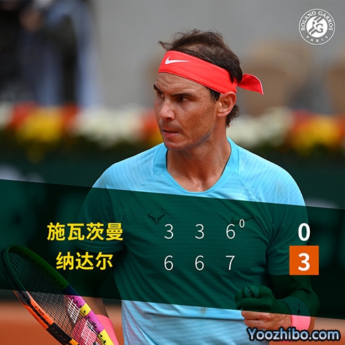 最终,卫冕冠军纳达尔继续出色状态,6-3/6-3/7-6直落三盘击败阿根廷好手施瓦茨曼,报了不久前罗马赛告负的一箭之仇,生涯第13次闯进法网男单决赛。整场比赛耗时3小时09分钟,比赛中纳达尔完成3记ACE球施瓦茨曼则是2记ACE球3次双误,一发成功率纳达尔达到69%一发得分率68%军领先对手。制胜分上那阿达尔38-24领先,非受迫失误方面施瓦茨曼48-34多出对手14个。破发环节上,施瓦茨曼12个破发点完成3次破发,纳达尔则是9个破发点6次破发。