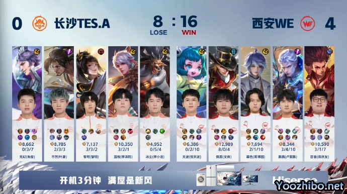 直播车讯 北京时间07月24日KPL比赛,西安WE展现出了强大的实力和出色的团队配合,以4-0的大比分战胜长沙TES.A成功锁定常规赛第三轮A组。