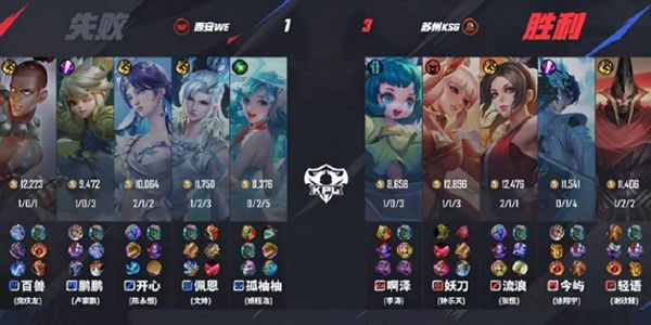 第三局:中期KSG开启奔狼强冲塔下,WE一波完美配合成功反打。WE持续进攻将优势扩大,压制KSG,成功扳回一局。本局MVP为西安WE_佩恩 (文帅)公孙离!