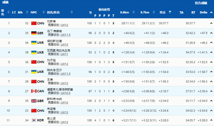 今天中国队拿下了的唯一一枚金牌,来自于冬季两项男子中距离坐姿比赛,刘梦涛以30分37秒7的成绩勇夺金牌,此前刘梦涛拿下一枚铜牌,这次他终于圆梦成功,夺得冠军。为中国队拿下了首金的刘子旭在这个项目获得第5名,王涛第7名,朱运锋第10名。中国队在该项目创造了历史最佳战绩,刘梦涛来自河北,家庭条件不是很好,这次终于成为冬残奥会金牌得主。