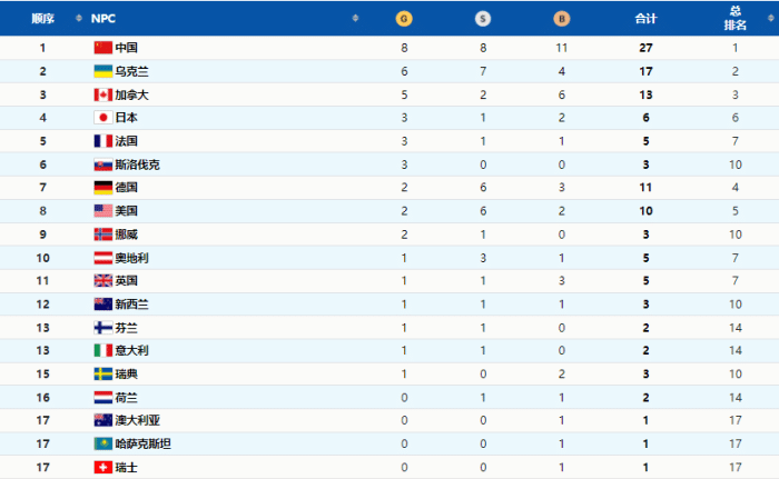 中国队连续4日摘金,领跑冬残奥双榜!8金8银11铜再创新高