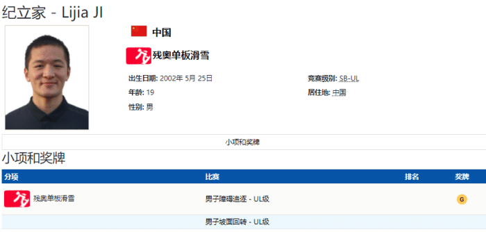 这也是本届冬残奥会河北选手斩获的第4枚金牌,超过了目前所有的体育代表团。纪立家是河北省石家庄市深泽县人,他年少的时候遇到意外,在6岁的时候左前臂“不见”了。少年时的纪立家爱动好玩,2016年,河北省残疾人单板滑雪队刚刚成立,那个时候14岁的纪立家凭借出众的运动才能,被教练看中,由此开始单板滑雪专项训练。期间纪立家非常努力,他后期拿下了世界杯分站赛、亚洲杯、全国残运会等比赛冠军,也成为了目前世界上残疾人单板滑雪男子上肢组积分最高的运动员。