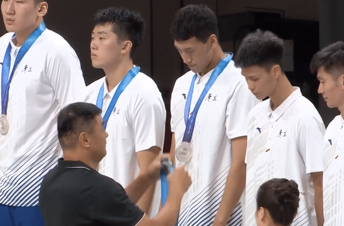 之后的颁发奖牌环节,几位教练员都有说有笑的,刘玉栋作为颁奖嘉宾出席,能看到戴着银牌的广东队员都闷闷不乐的,对于这个结果他们自然是不满意的。稍微心情好一点的就是周鹏和杜锋,他们微笑着在说着什么!
