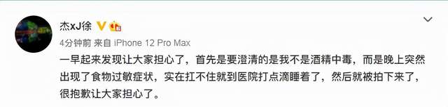 酒精中毒住院?徐杰紧急辟谣:食物过敏症状,很抱歉让大家担心了